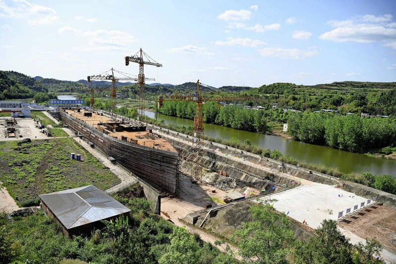 De replica is onderdeel van een groot zevensterrenresort, iets ten oosten van Chengdu, aan de Qiijang-rivier.
